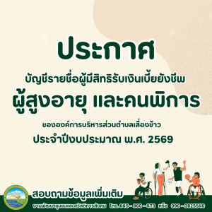 ► บัญชีรายชื่อผู้มีสิทธิรับเงินเบี้ยยังชีพผู้สูงอายุของ ประจำปีงบประมาณ พ.ศ. 2569